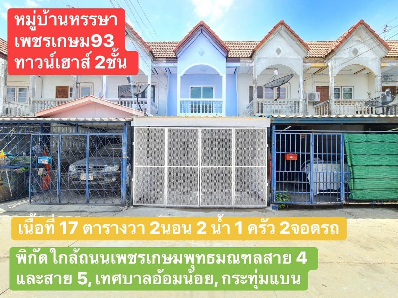 -ทาวน์เฮาส์ 2ชั้น เนื้อที่ 17 ตารางวา 2ห้องนอน 2 ห้องน้ำ 1 ห้องครัว 2จอดรถ