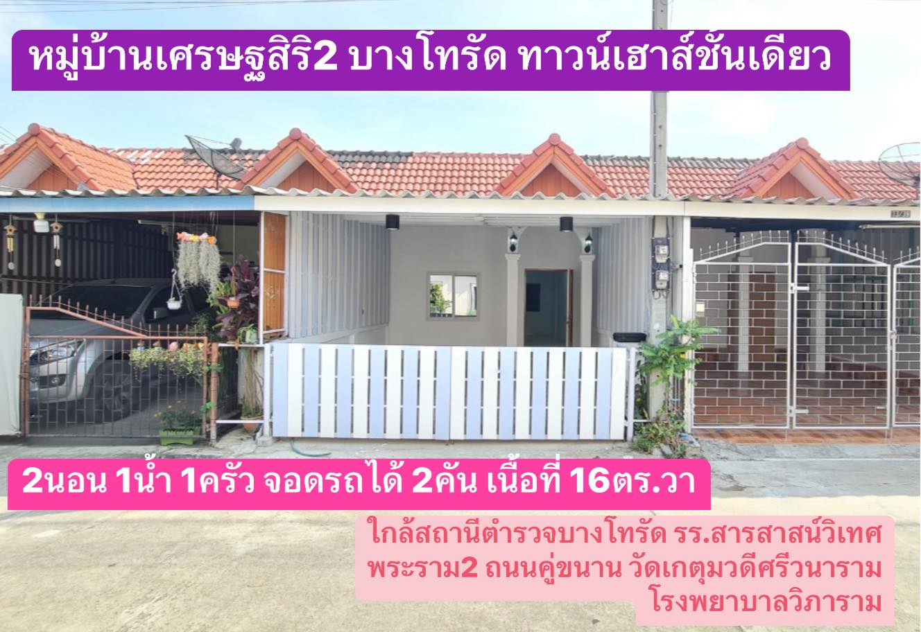 #ทาวน์เฮ้าส์ชั้นเดียว #หมู่บ้านเศรษฐสิริ2 แหล่งชุมชน ติดถนนพระราม2 ใกล้สถานีตำรวจบางโทรัด ทำเลดีไม่ไหวว