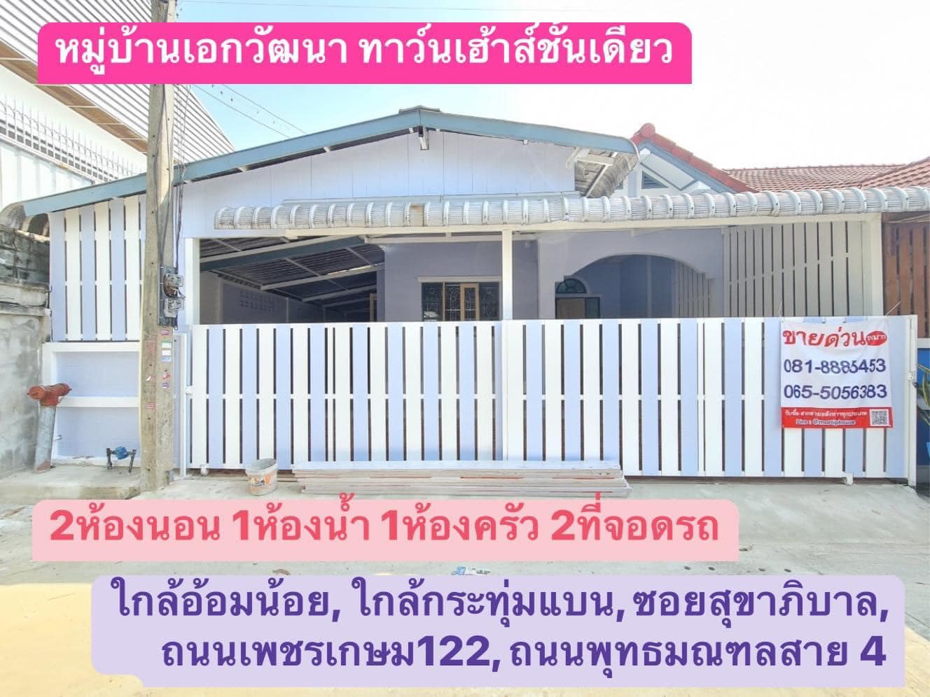 #ขายทาวน์เฮ้าส์ชันเดียว #หมู่บ้านเอกวัฒนา #อ้อมน้อย #เพชรเกษม122 #ซอยสุขาภิบาล #ใกล้เพชรเกษม #กระทุ่มแบน